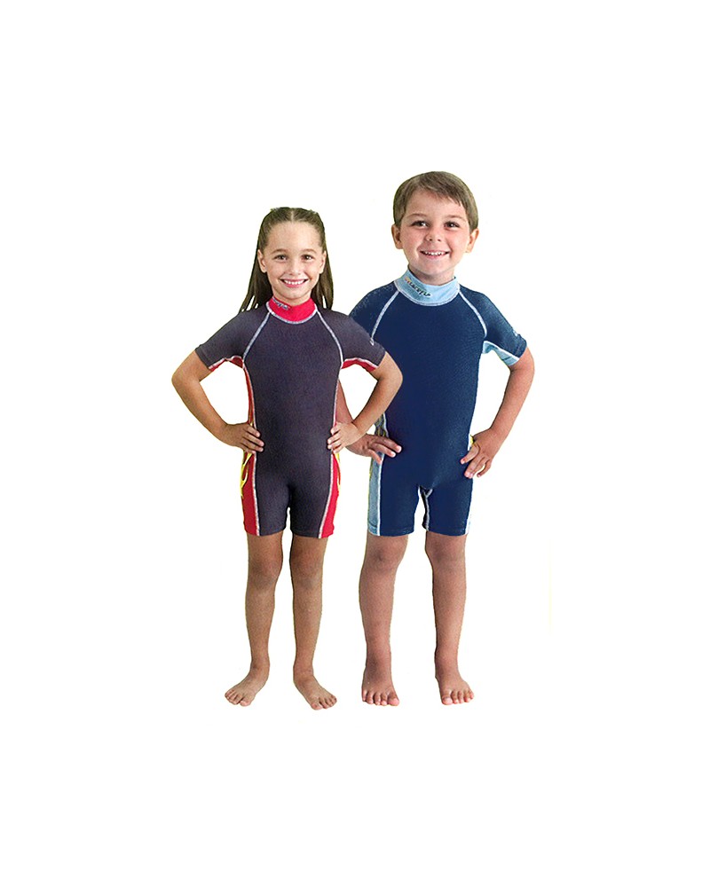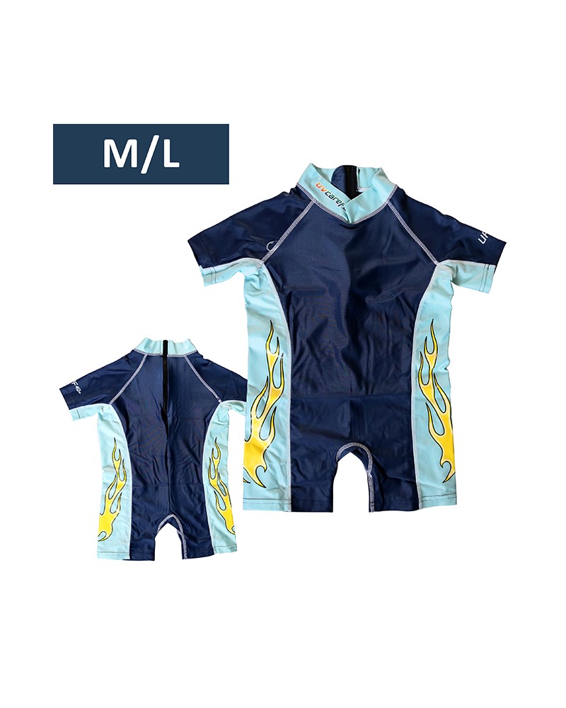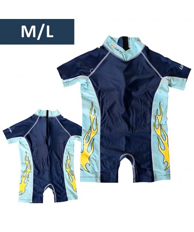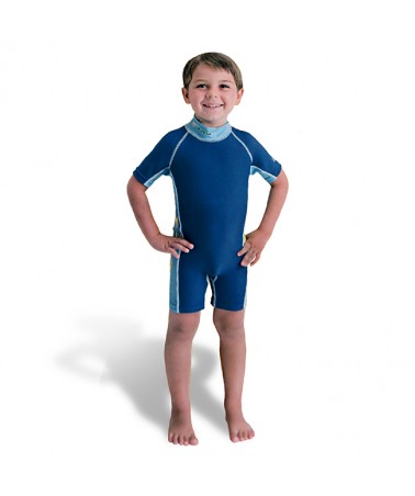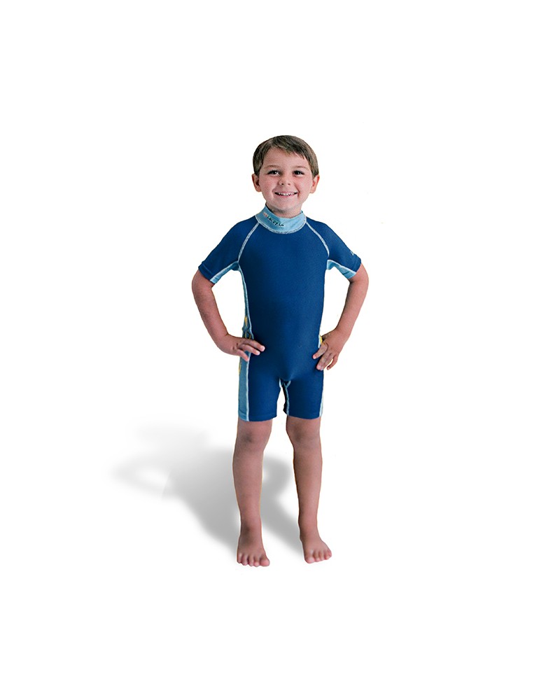 Este fato de natação com proteção UV permite que a criança esteja protegida do sol mesmo estando molhada.