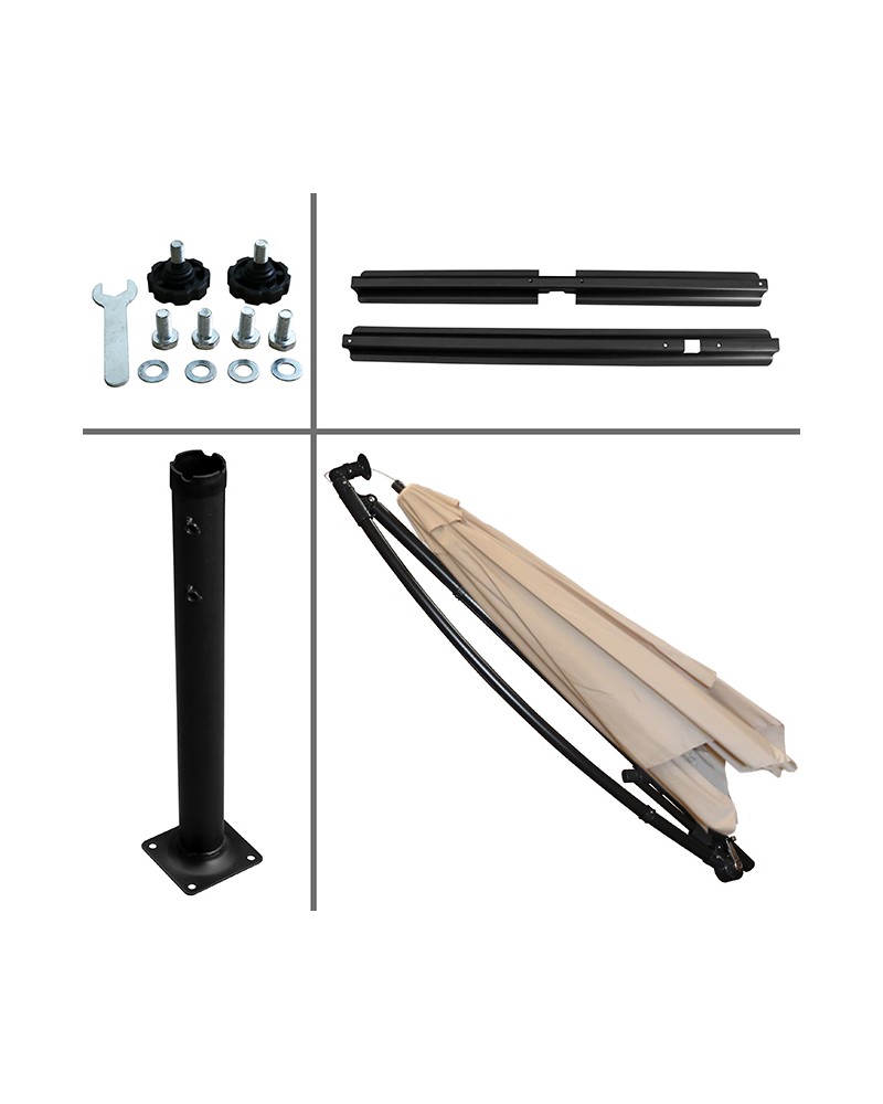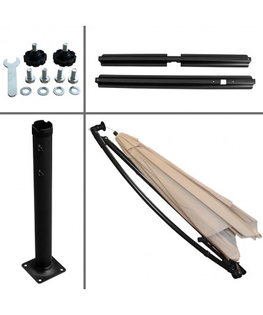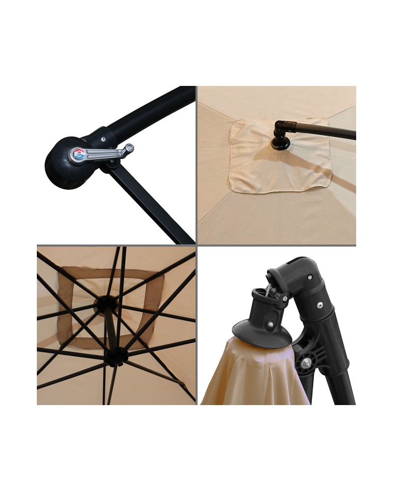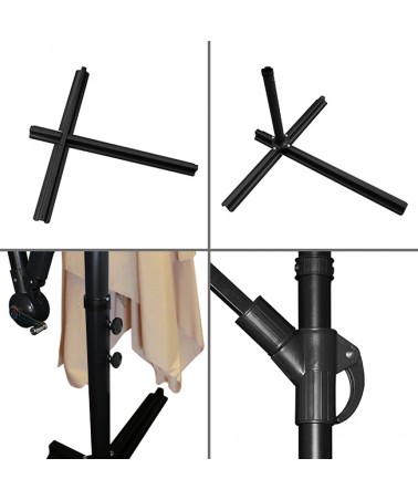 O Guarda-sol suspenso quadrangular é a escolha ideal para sombrear grandes áreas sem obstáculos no meio permitindo um melhor aproveitamento da área sombreada.