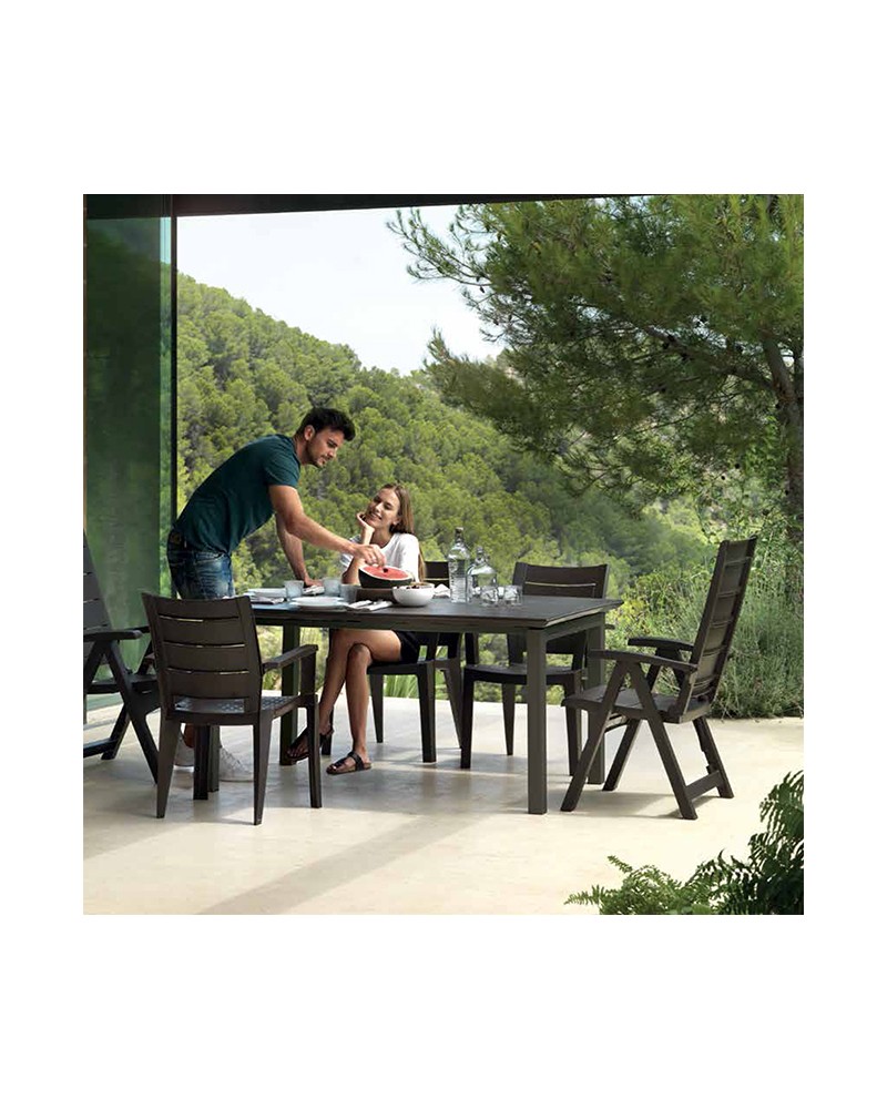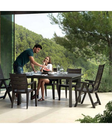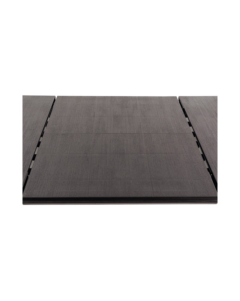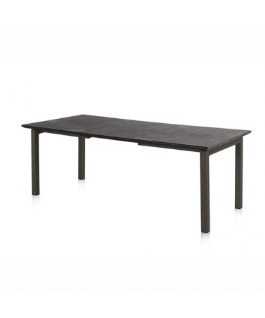 Mesa extensível de grande presença e alta qualidade com ótimo acabamento na superfície simulando madeira. Contém estrutura metálica aparafusada ao tampo que confere robustez e estabilidade.