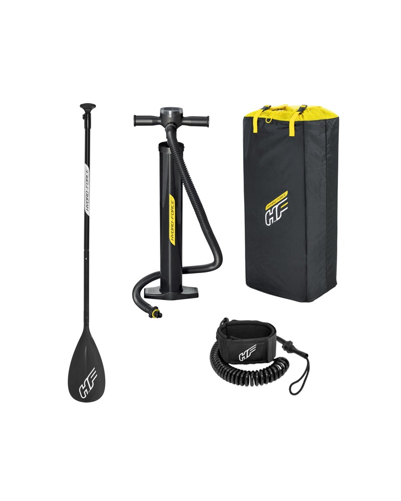 • Contém: Prancha de paddle, Paddle, chop, quilha central amovível, bomba manual, mochila de transporte e arrumação e kit de reparação.